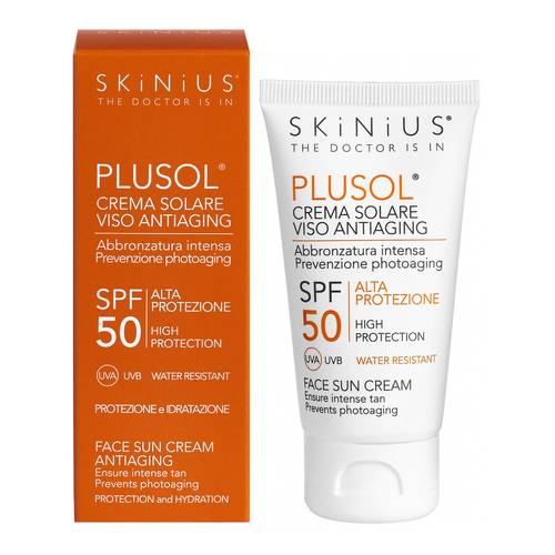 PLUSOLCREMA SOLARE VISO SPF 50 Descrizione Crema solare viso SPF 50, contiene Plusolina FF, un complesso costituito da un nuovo sistema di filtri UVA e UVB, olio extravergine di oliva e vitamina E. I suoi ingredienti assicurano una efficace azione preventiva e protettiva nei confronti dei danni da esposizione solare. Modalità d'uso Applicare prima di esporsi al sole, evitando comunque un'esposizione prolungata. Applicare abbondantemente e frequentemente, per evitare una riduzione della protezione solare, soprattutto dopo i bagni e l'utilizzo dell'asciugamano. Componenti Aqua, C12-15 alkyl benzoate, ethylhexyl salicylate, cetearyl ...